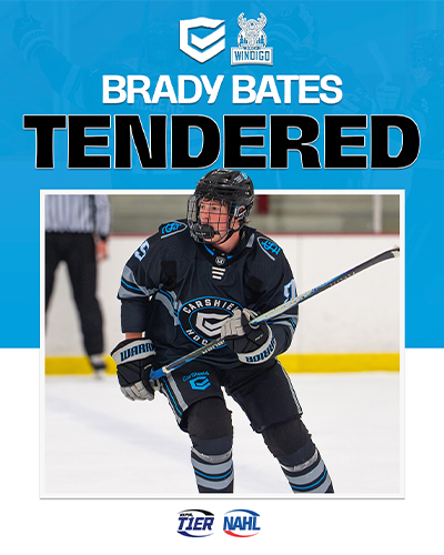 The NAPHL’s T1ER League is pleased to announce that CarShield 18U forward Brady Bates has signed a NAHL tender agreement for the 2025-26 season with the Wisconsin Windigo of the NAHL’s Midwest Division.